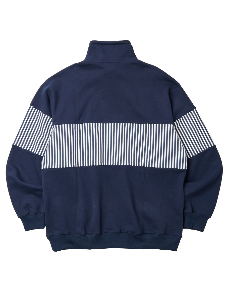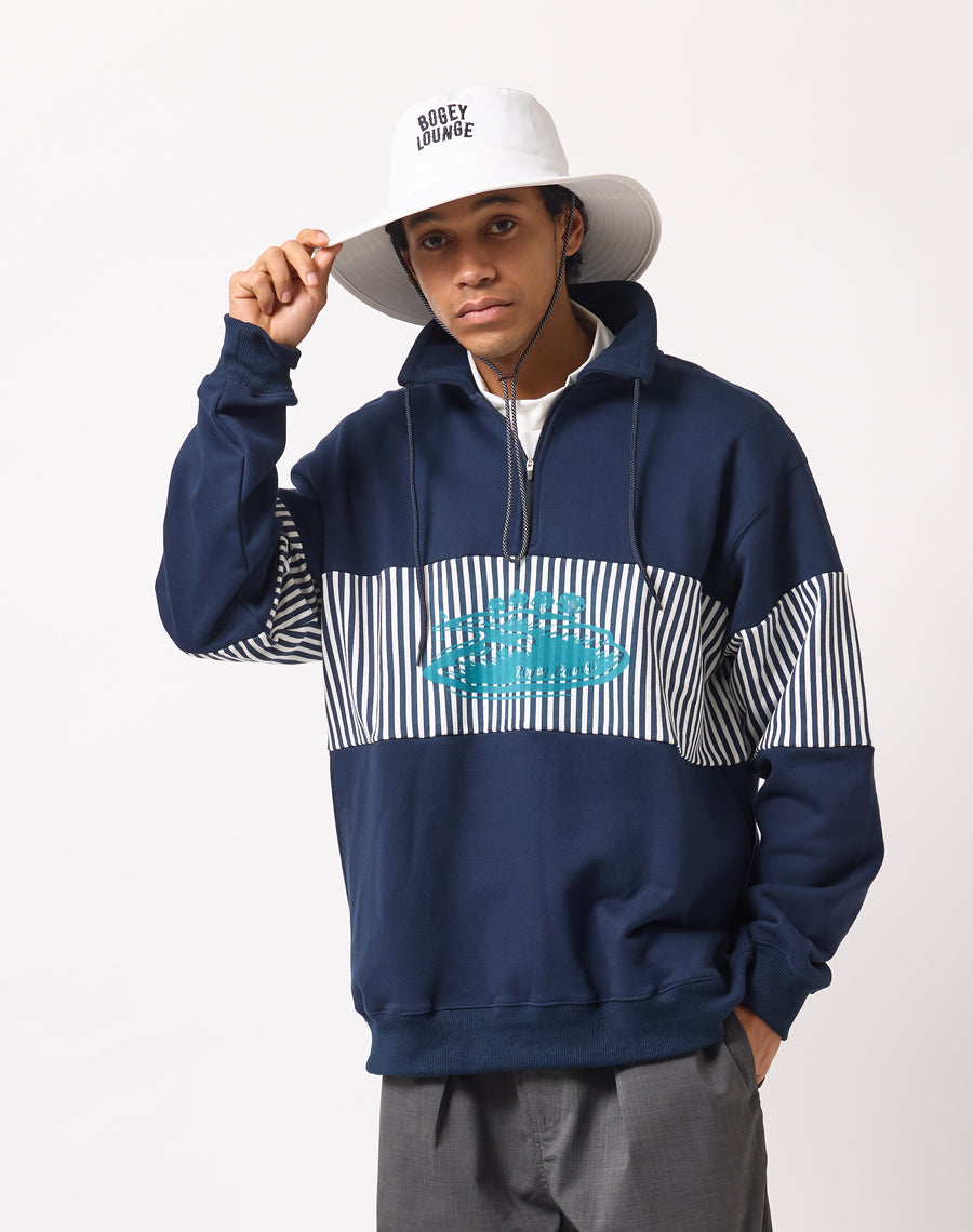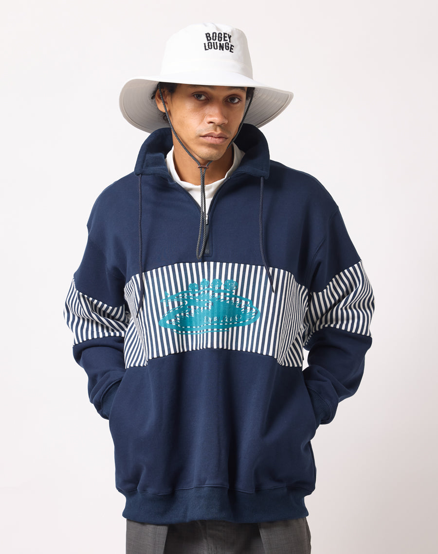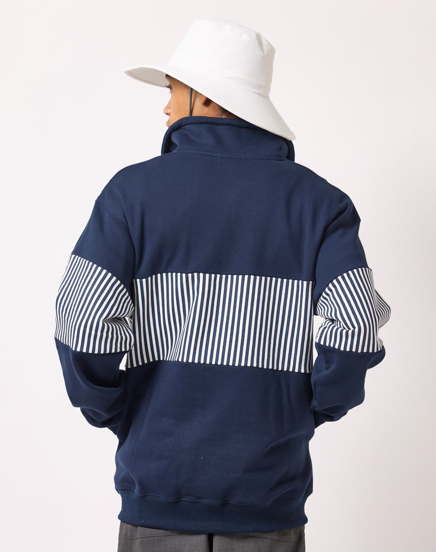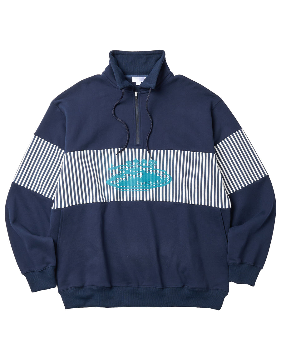 80年代アメカジを思わせるレトロなストライプが印象的なハーフZIPプルオーバー。