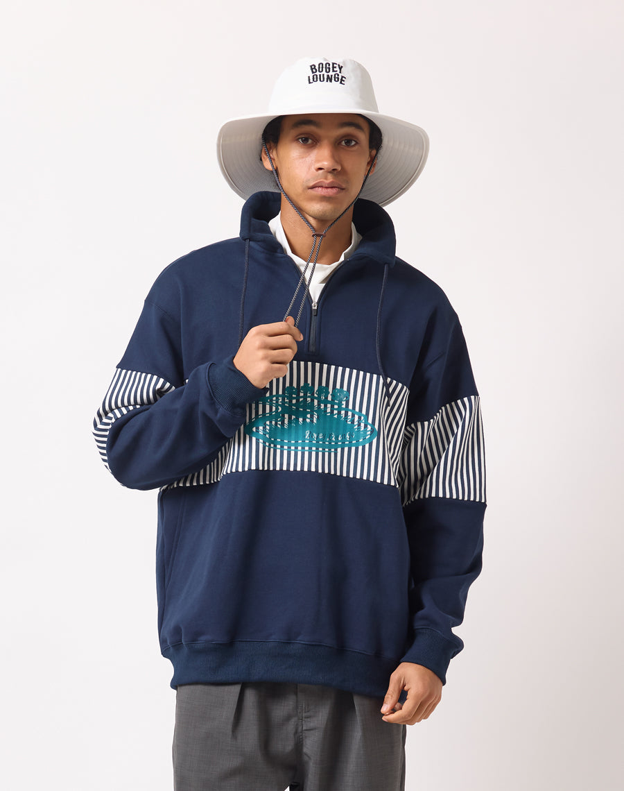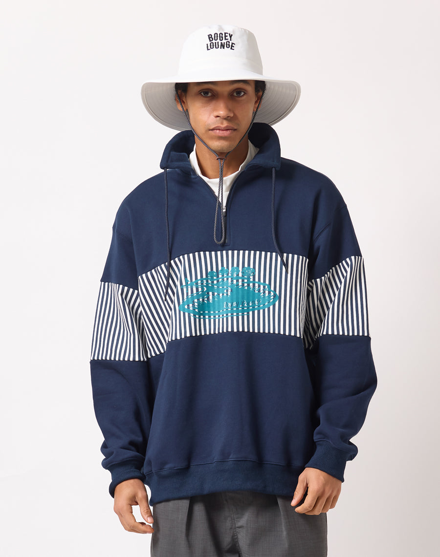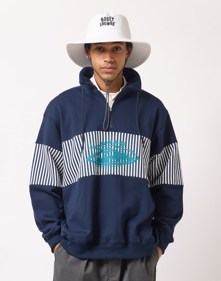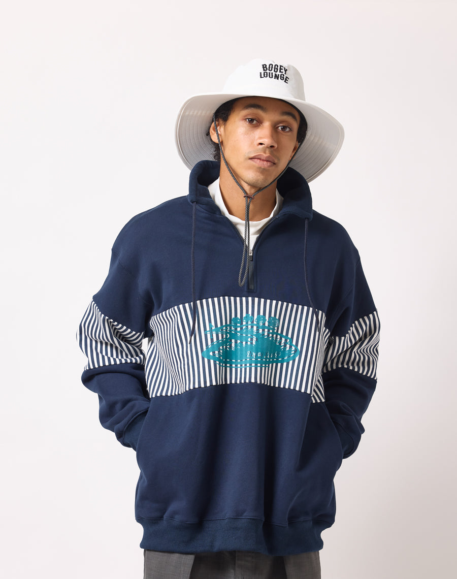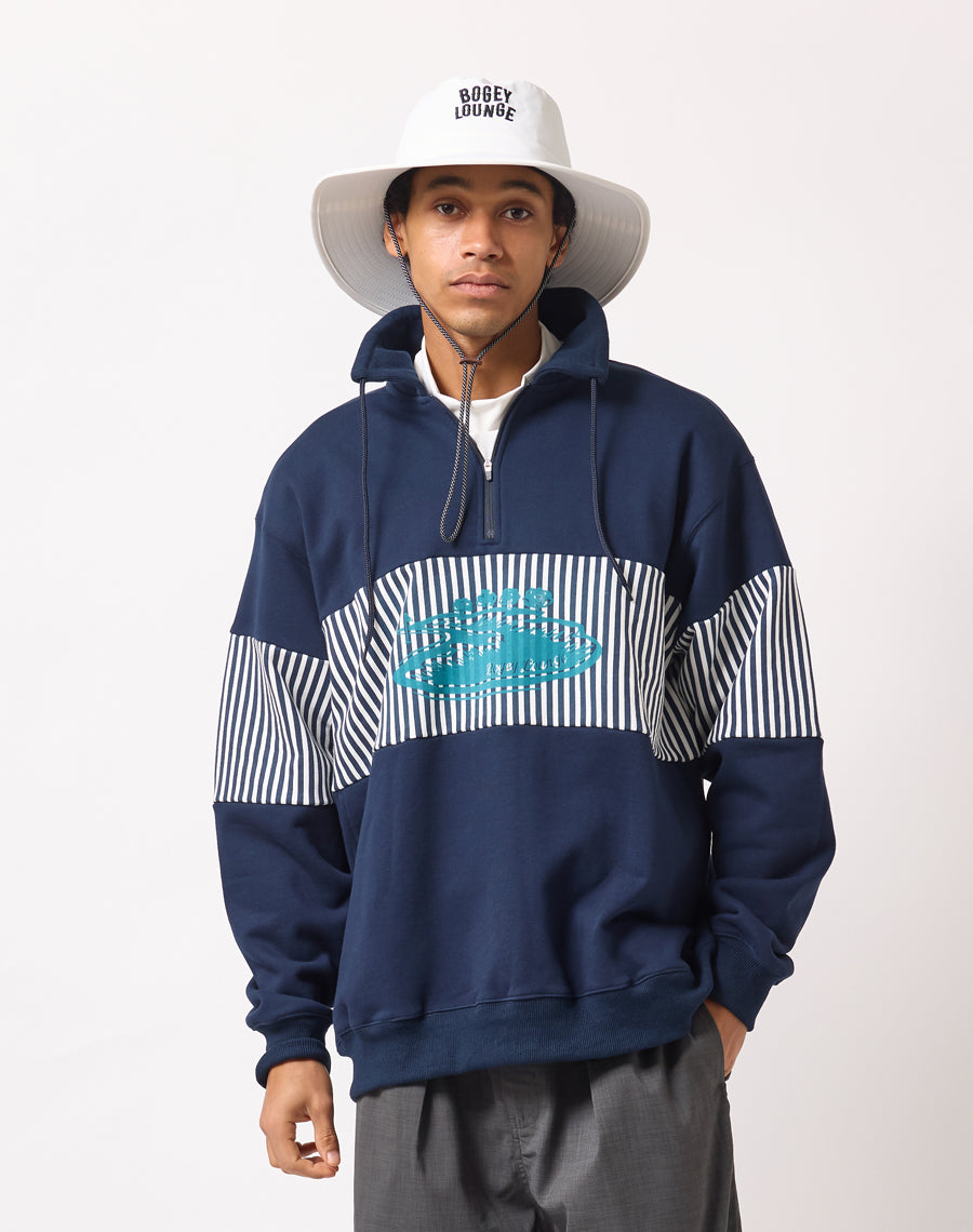 80年代アメカジを思わせるレトロなストライプが印象的なハーフZIPプルオーバー。