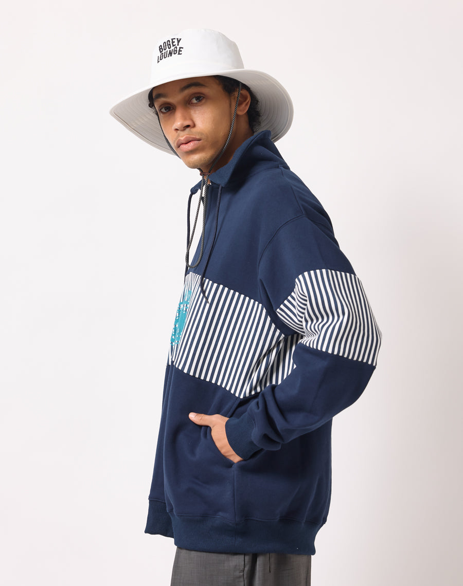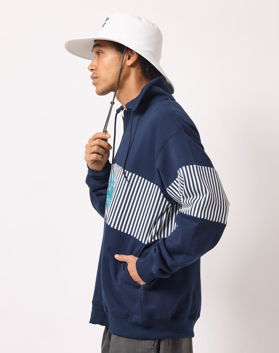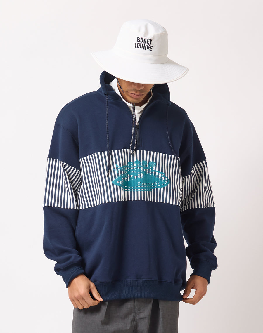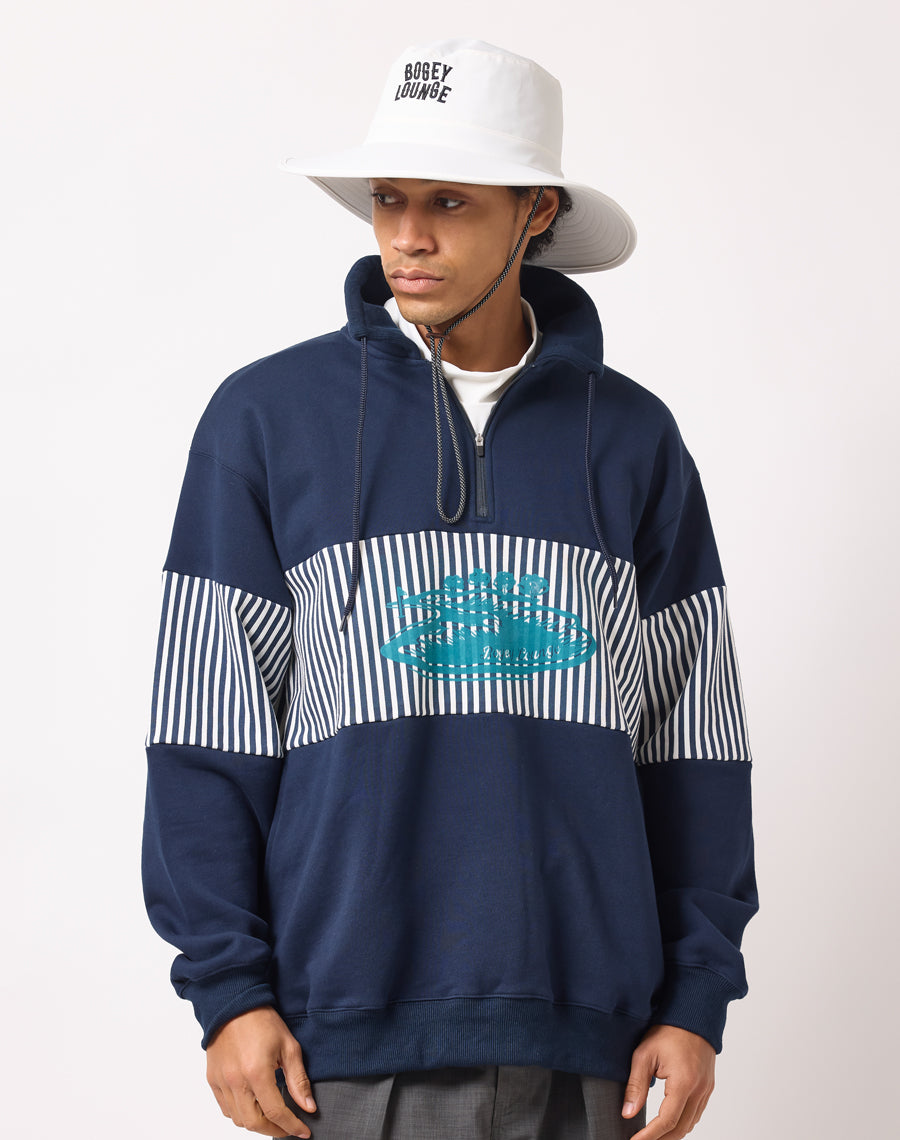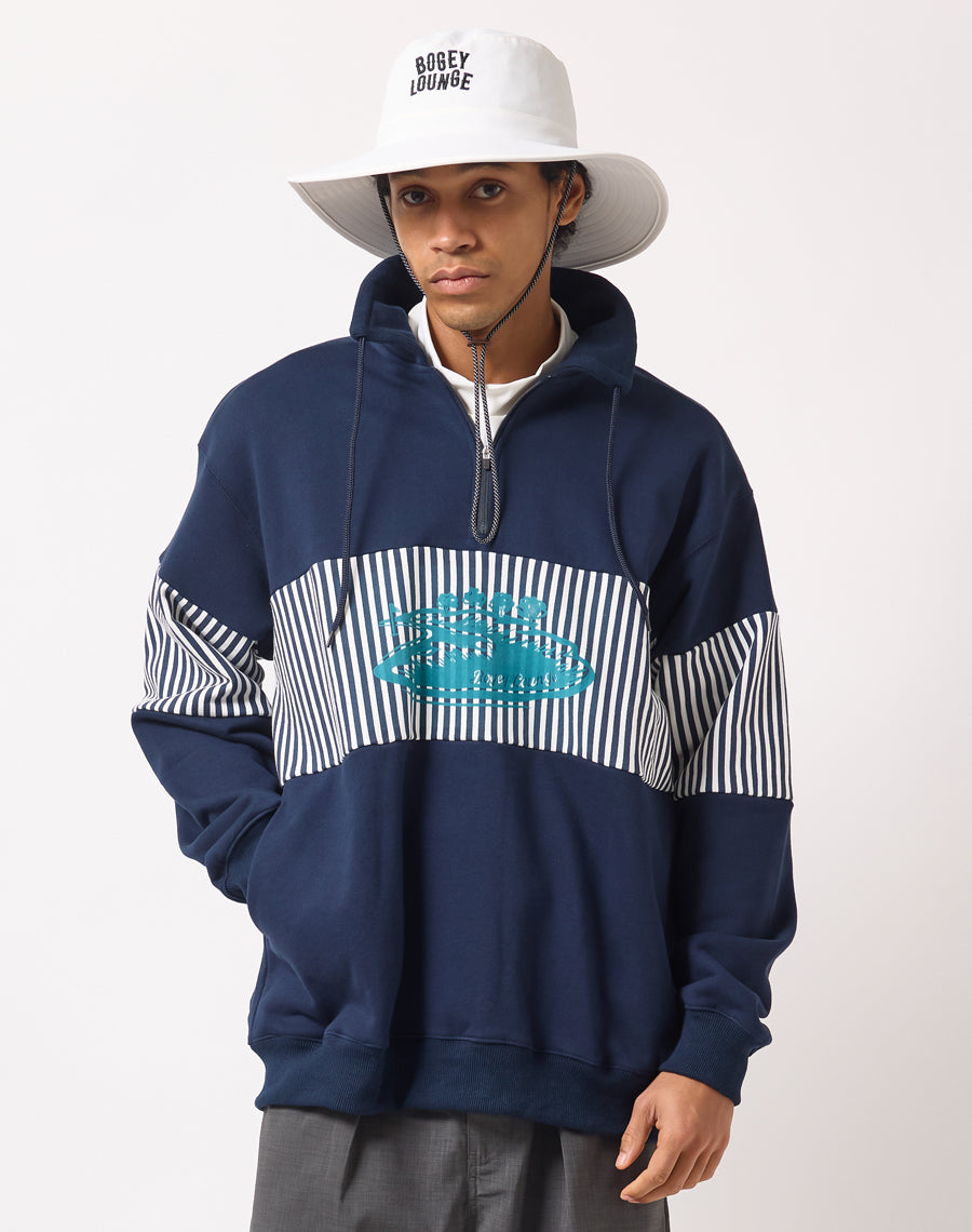 80年代アメカジを思わせるレトロなストライプが印象的なハーフZIPプルオーバー。