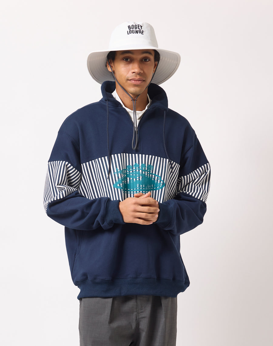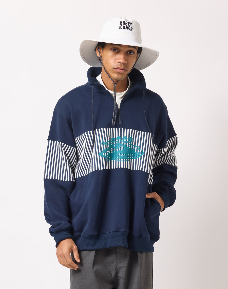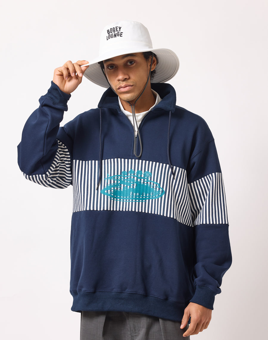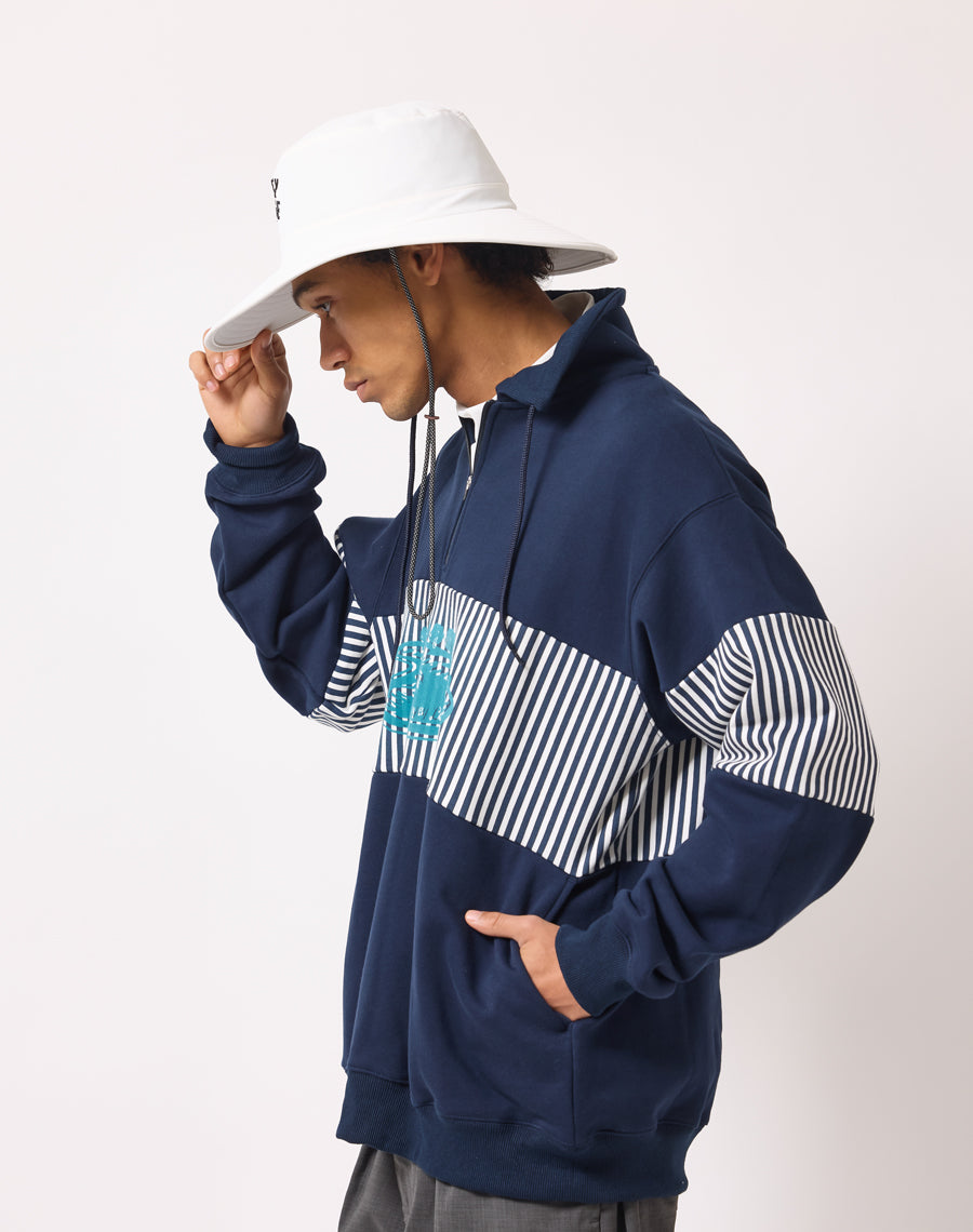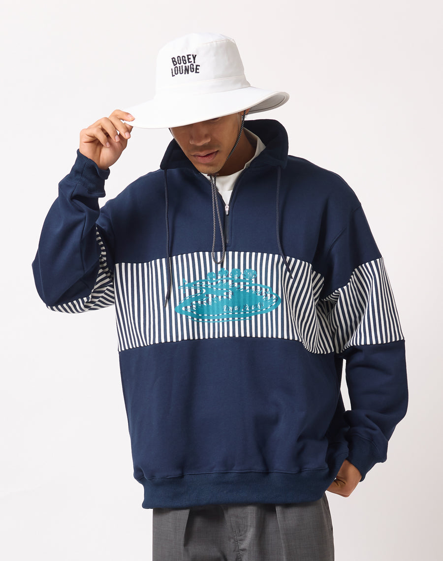 80年代アメカジを思わせるレトロなストライプが印象的なハーフZIPプルオーバー。