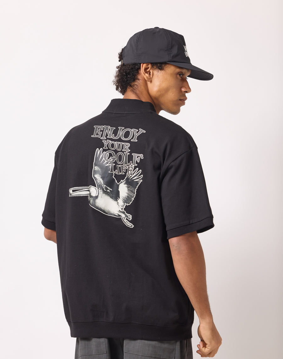フロントは控えめなロゴで上品に、バックには大胆なペリカン×メッセージのプリントを配置し、1枚でスタイリングの主役になるデザインに仕上げました。